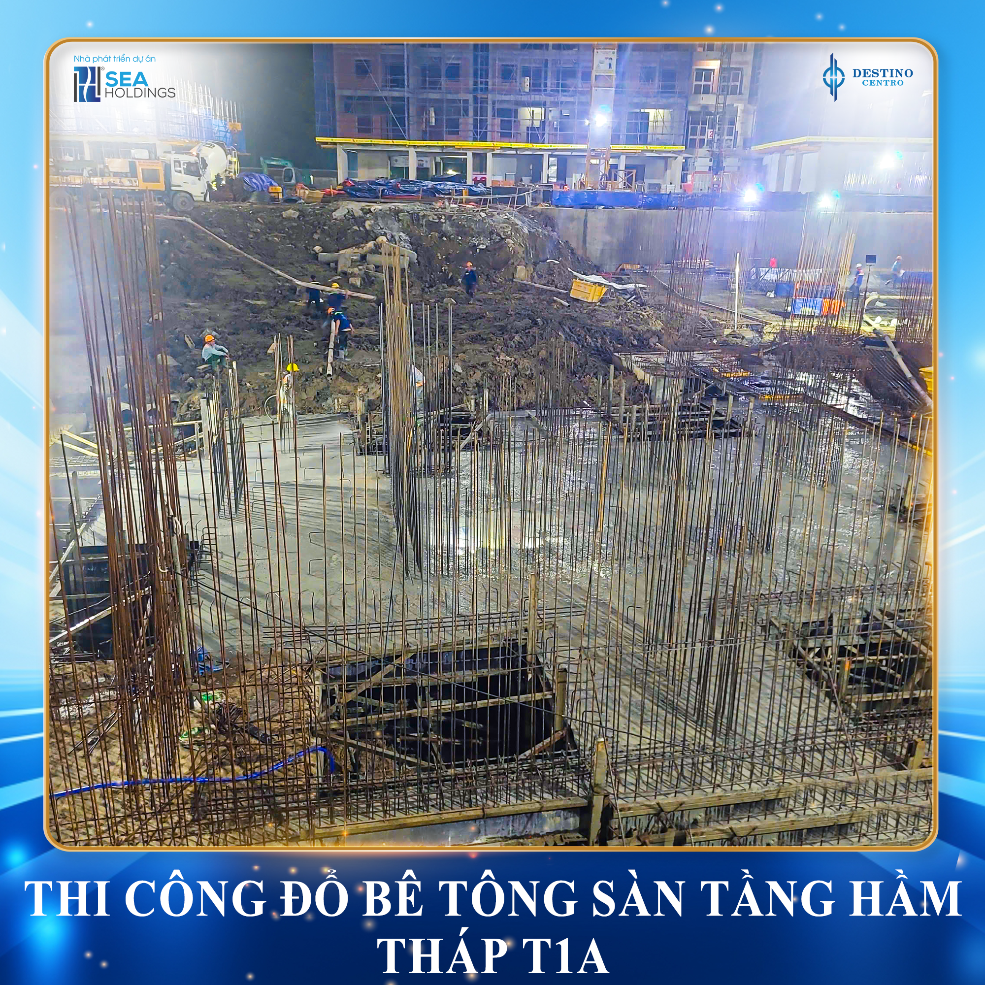 Sức nóng của dự án Destino Centro tiếp tục gia tăng mạnh mẽ khi công trường thi công luôn sôi động 24/7. Dưới sự giám sát chặt chẽ của nhà phát triển dự án Seaholdings, các hạng mục quan trọng đang được triển khai đồng bộ, đảm bảo chất lượng và bám sát kế hoạch bàn giao.